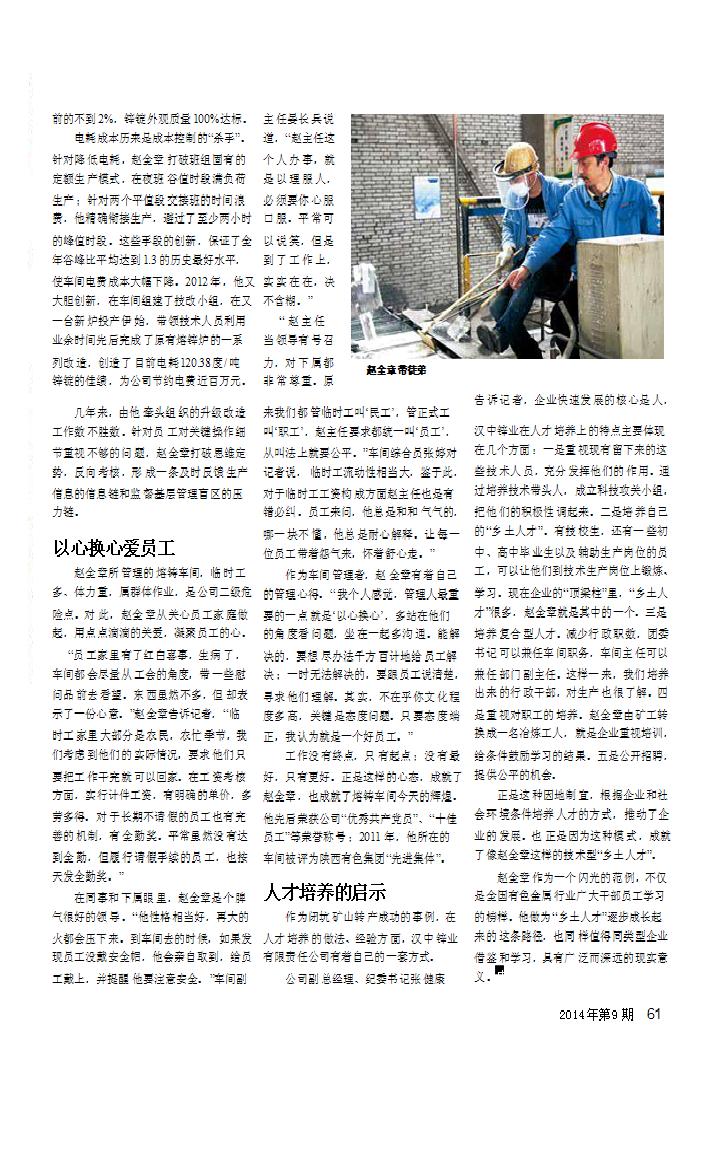 心系鋅業的 “鄉土人”——記漢中鋅業有限責任公司熔鑄車間主任趙全章