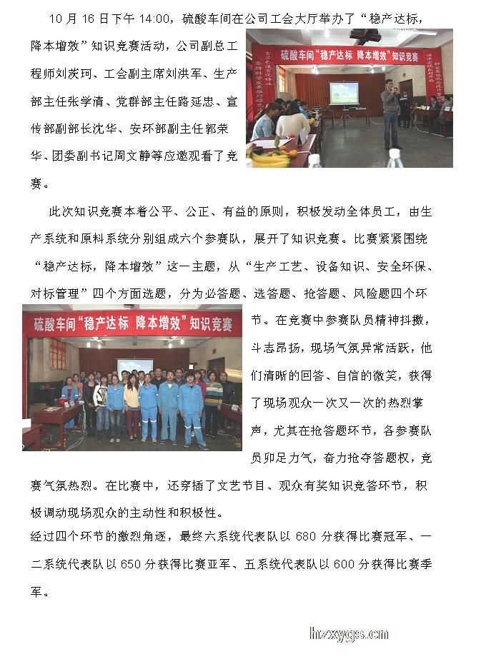 硫酸車間舉辦“穩產達標,降本增效”知識競賽活動